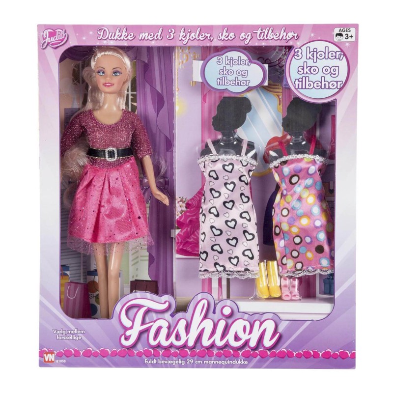 Judith med 3 kjoler og tilbehør.