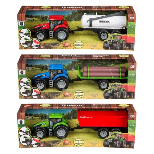 Traktor med anhænger 1:32. 42 cm. Med friktion. Skala 1:32. Vælg mellem forskellige modeller, der tages forbehold for udsolgt.