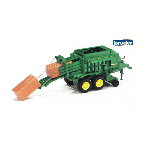 Den store halmpresser er perfekt til høsten. Når vognen kører samles høet og sendes ned ad rampen, som du også kan vippe op. Skub støttebenet ned for bedre stabilitet.