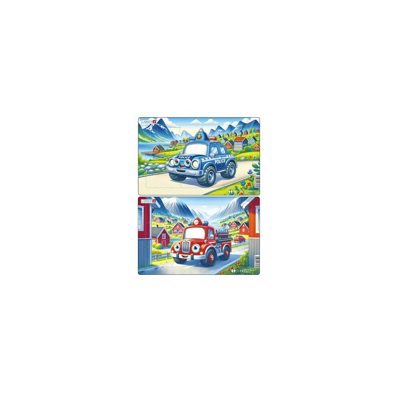Puslespil Politi og Brandbil i fuld fart Puslespil Politi og Brandbil i fuld fart