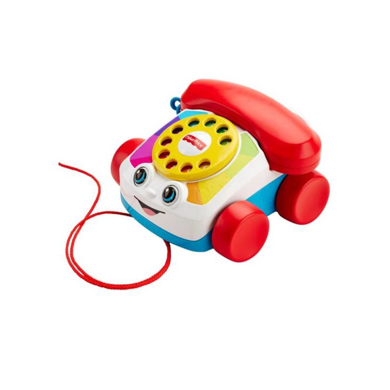 Dette klassiske stykke legetøj med sit rare ansigt, drejeskiven, de sjove telefonringelyde og øjne, der bevæger sig op og ned, når det trækkes afsted, hjælper dit barn med at snakke – og gå – som en professionel.?Dit barn kan sidde og lege med legetøjstelefonen eller trække den afsted, når det gårChatter Telephone®-legetøjstelefonen har sjove ringelyde og øjne, der bevæger sig op og nedDrejeskiven introducerer barnet til tallene 0-9 Opmuntrer til tidlig rolleleg, når babyen eller tumlingen leger, at de "ringer til" nogen. Fra 12 mdr.