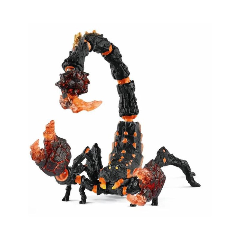 Dens skjold er af hård, afkølet lava, men inden i den brøler den glohede, flydende lava. Hvis en modstander kommer for tæt på, angriber den uden varsel med sin glohede, ultrastærke bideklo. Kommer man nærmere, får man helt sikkert dens glohede stik at mærke. Hvis den skal kæmpe mod flere angribere, bruger lavaskorpionen sin enorme halepig, som den kan svinge i alle retninger som en grufuld ildkugle. Netop fordi den er så god til at gemme sig, er den ikke bange for nogen eller noget. Det siger den i hvert fald altid. Der er nemlig et væsen, den i al hemmelighed er bange for. Isdragen kan med sin lammende isånde være farlig for ham - og blæse lavaskorpionen til en isstatue! Fra 7 år.