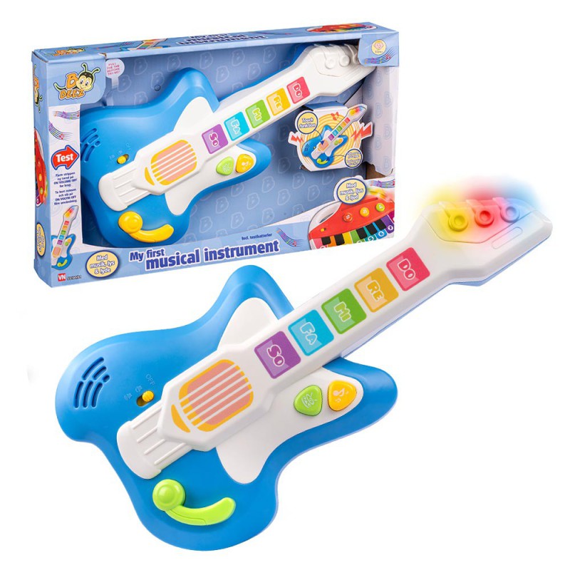 B. Beez My First Musical Instrument guitar med farverigt lys og sjove lyde. Stimulerer barnets rytme, sans og musikglæde gennem leg.