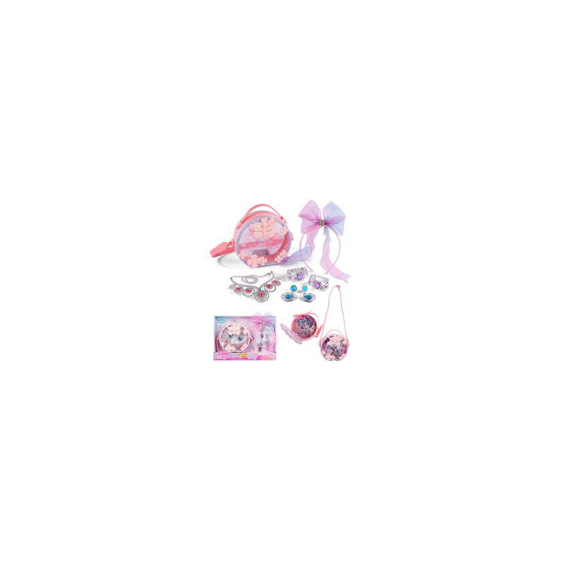 Fashion taske med smykker og diadem. Smart håndtaske med gennemsigtig front, smykker og diadem med slør.