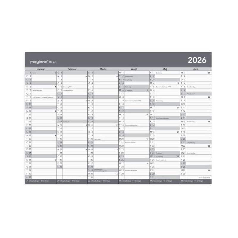 Vendbar kontorkalender i karton i simpelt design med 2×6 månedsoversigt. Vægkalenderen giver dig en oversigt med 6 måneder ad gangen, så du hurtigt og nemt kan skabe et godt og overskueligt overblik over året og alle dets aktiviteter.