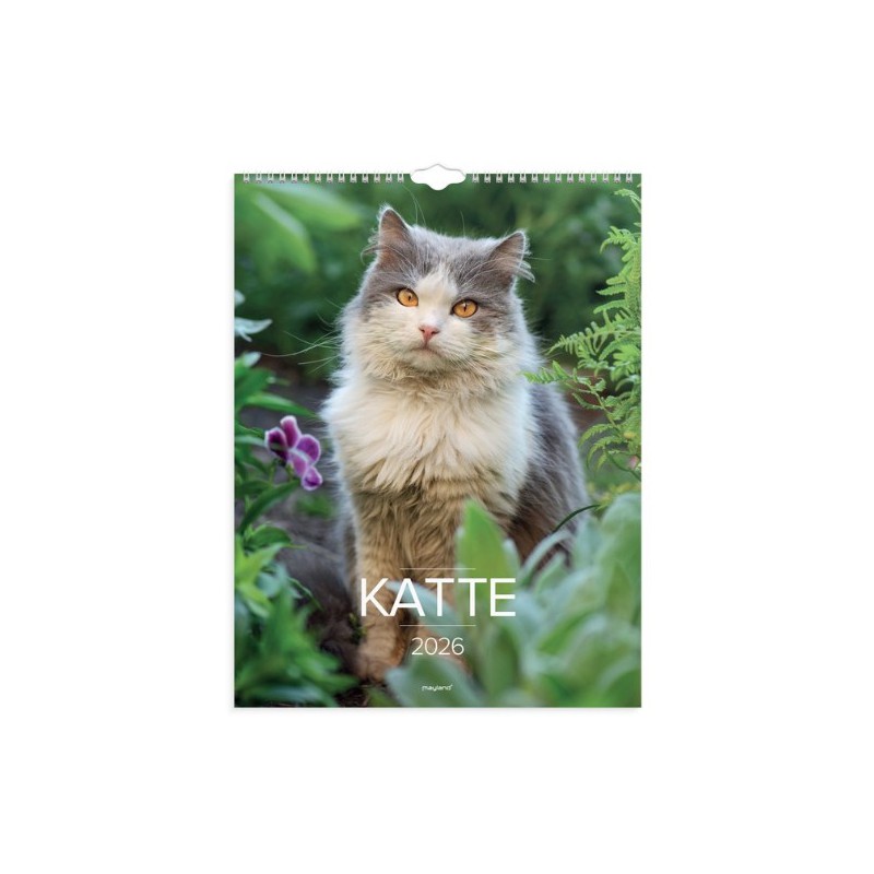 Vægkalender i karton med flotte billeder af katte. Kalenderen er spiralindbundet og giver dig en oversigt over 1 måned ad gangen med masser af plads til noteringer, så du hurtigt og nemt kan skabe et godt overblik over den enkelte måned.