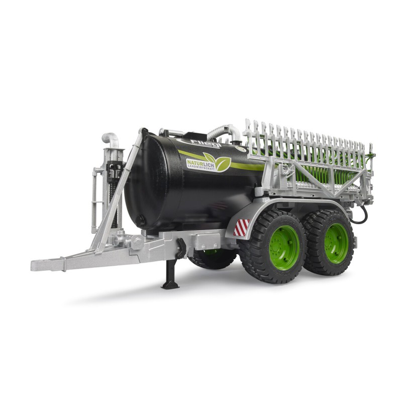 Denne detaljerede model fra BRUDER er udstyret med en trækbar slangeudløser. Den integrerede tank kan fyldes med vand og lukkes med en prop. Traileren tømmes gennem en afløbsventil i bagenden af ​​traileren. Til vejtransport kan slangeudløseren foldes ind og foldes ud igen under markarbejde. BRUDER 3000- og 4000-seriens traktorer er den perfekte traktor til denne imponerende trailer