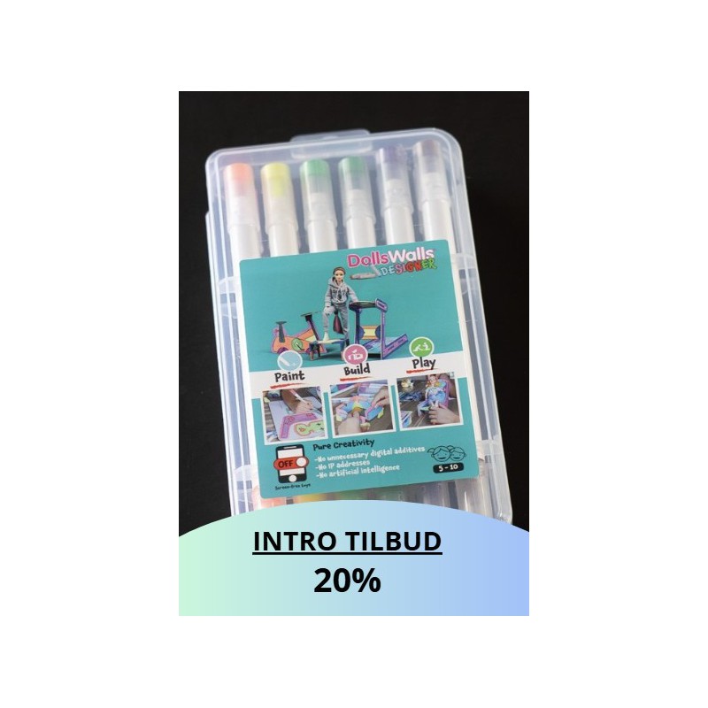 Gør dine DollsWalls møbler og rum ekstra personlige med denne pakke med 12 supergode tusser i spændende farver! Perfekt til at komme i gang med at male dine egne designs.
