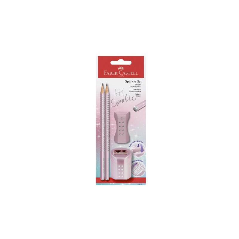 faber Castell sparkle sæt med 2 blyanter, et viskeæder og en blyantspidser