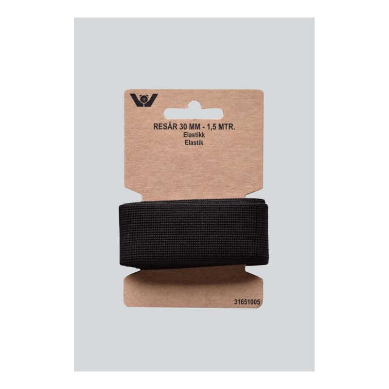 Bred sort elastik 30 mm, 1,5 m til kraftige syprojekter.