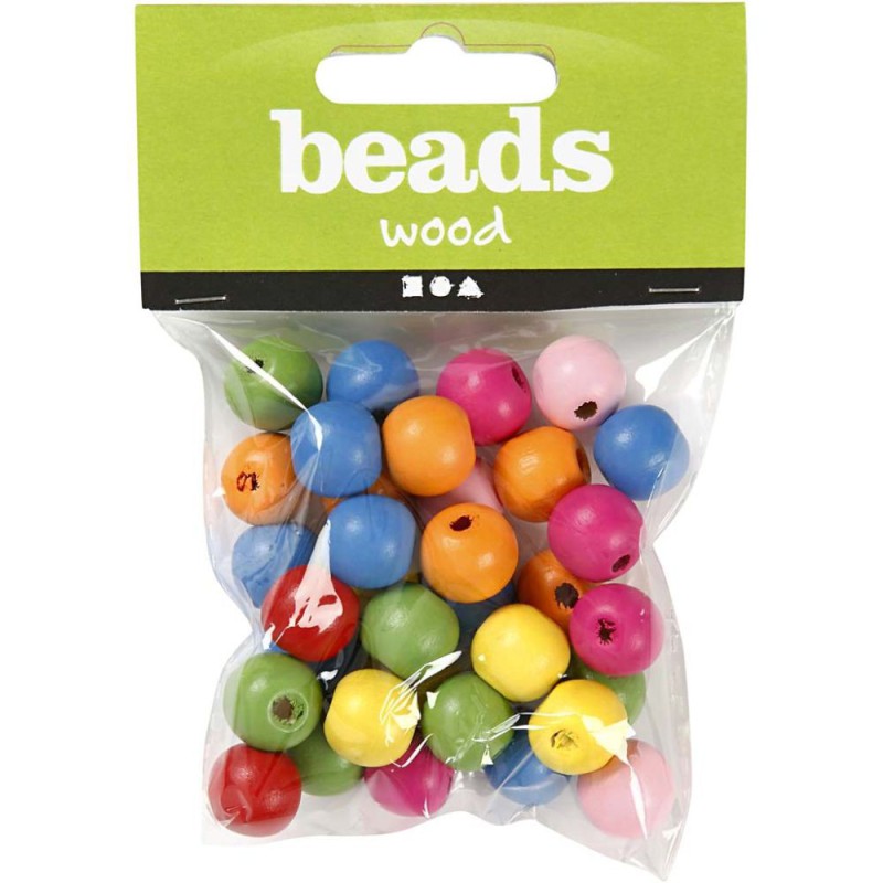 Mix af træperler i lyse, naturlige farver. Perfekt til smykker, dekorationer og kreative projekter, der giver et varmt og naturligt udtryk.