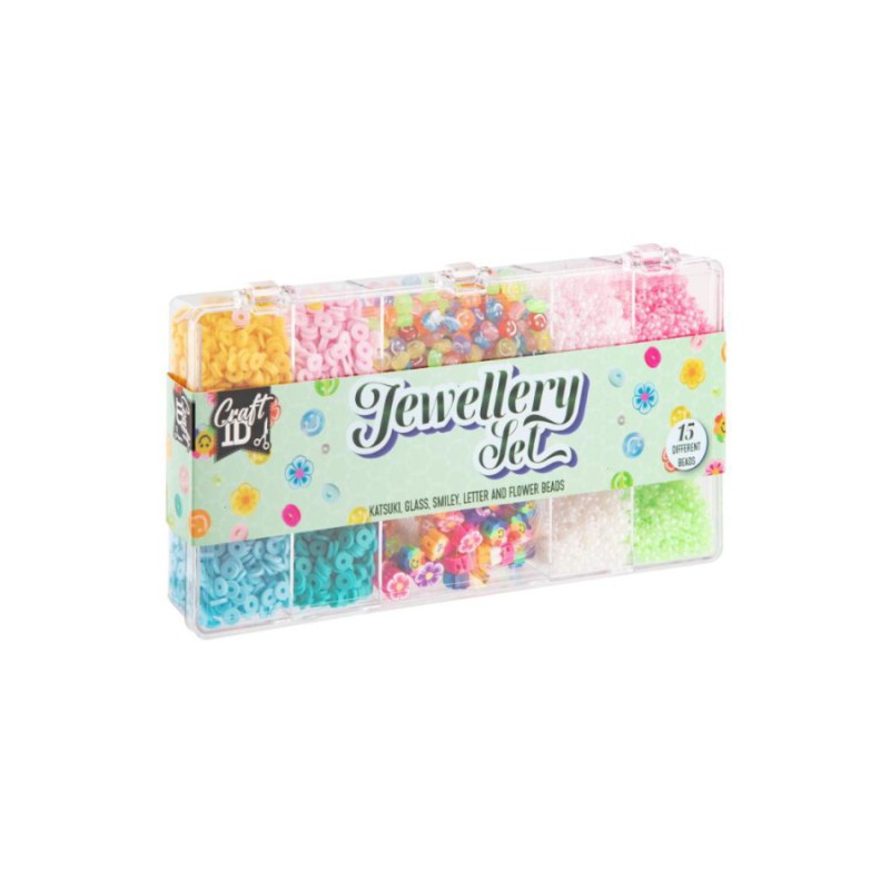Smykkesæt m glass, blomster og smiley perler.