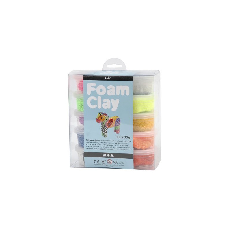 Foam Clay Basic farver 10 x 35 g er et kreativt sæt med 10 bøtter i flotte basisfarver, perfekt til modellering og hobbyprojekter.