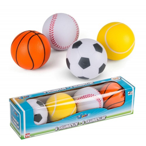 4 stk. bløde sportsbolde. 7,5 cm. I blødt PU-skum.