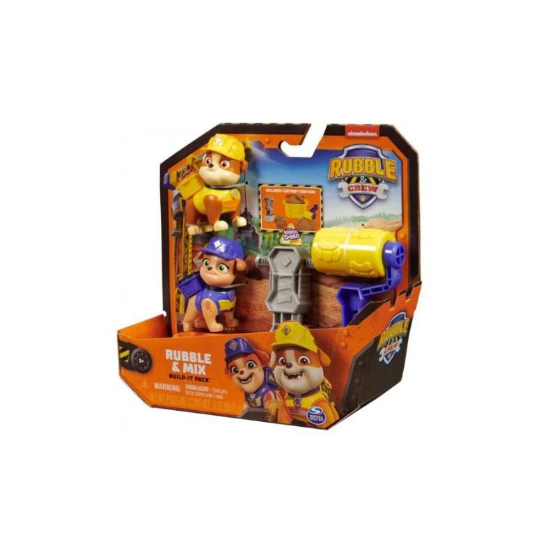 De seje Rubble & Mix figurer fra Rubble & Crew er klar til sjov og byggeeventyr – perfekt til små Paw Patrol-fans med stor fantasi.