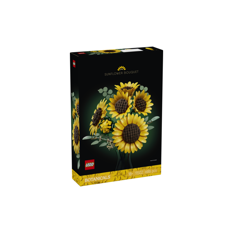 • LEGO® SOLSIKKER – Buketten indeholder 6 solsikker i forskellige stadier: 1 solsikkeknop, 3 nyligt udsprungne og 2 store, åbne solsikker • JUSTERBARE KRONBLADE – LEGO® buketten har justerbare kronblade og stilke samt 4 eukalyptusgrene, så blomsterbindere og byggere kan skabe en unik blomsterdekoration • BLOMSTERDEKORATION – Når solsikkebuketten er færdig, kan den udstilles som pynt i hjemmet eller på kontoret, og du kan kombinere den med andre LEGO® Botanicals sæt (sælges separat) for at skabe et stort blomsterarrangement • BLOMSTERINSPIRERET GAVE – Solsikker symboliserer positivitet, kærlighed og held, så sættet er en god gave til fødselsdage, valentinsdag, mors dag eller housewarming til kvinder, mænd og naturfans • BYGGE-APP – Byggesættet med blomster til voksne kan tilgås i LEGO® Builder appen, hvor spirende blomsterbindere kan se en digital byggevejledning og bygge sammen med dem, de holder af • LEGO® BOTANICALS SAMLINGEN – Byg flere blomster med andre byggesæt (sælges separat) fra LEGO Botanicals sortimentet, hvor du finder roser, tulipaner, potteplanter og meget mere • STØRRELSE – Sættet med 686 elementer