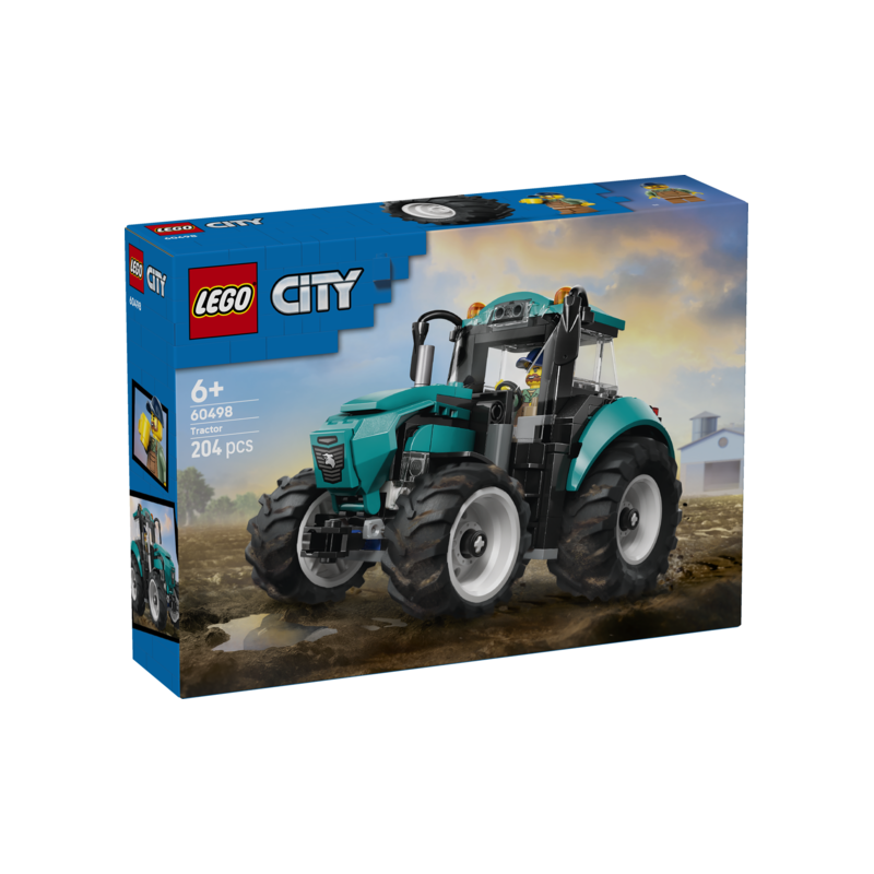 Legesættet med en LEGO® traktor indeholder alt, hvad børn skal bruge til at bygge en bondegårdstraktor med 4 store gummidæk og en blågrøn farve samt en landmand-minifigur