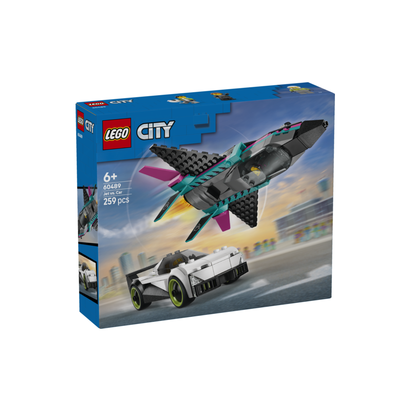 Glæd børn med timevis af leg i høj fart med LEGO® City byggesættet Jetfly mod racerbil