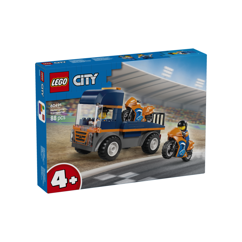 LEGO City 60491 Motorcykel-transporter fra Great Vehicles serien er et spændende byggesæt, der kombinerer transport og action. Børn kan bygge en transporter og fragte en motorcykel, hvilket giver masser af muligheder for kreativ leg.