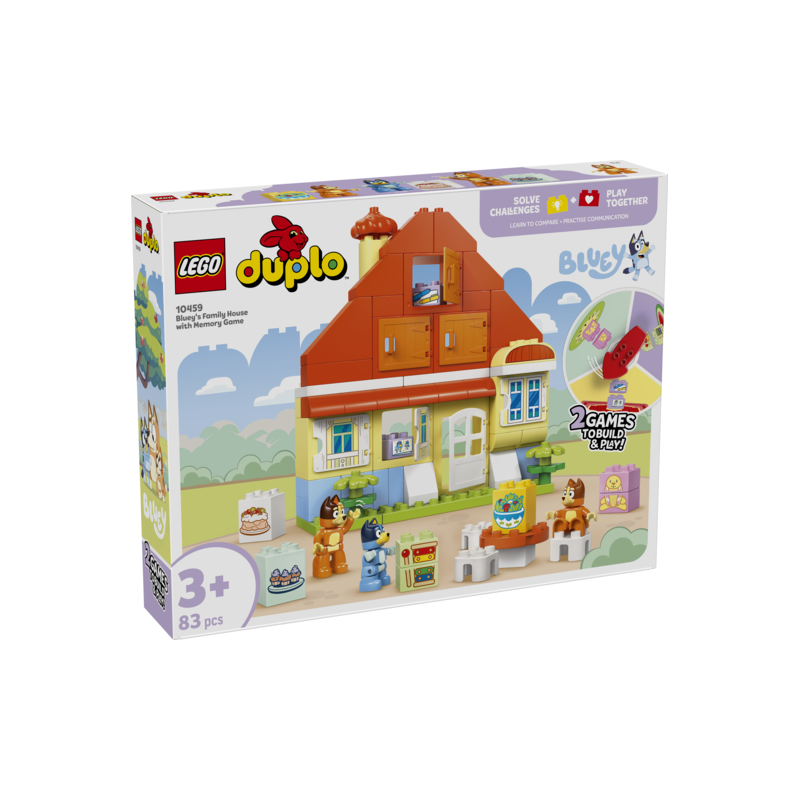 Interaktivt 2-i-1-legetøj til fans af Bluey, store som små – Det eventyrfyldte legetøj Blueys families hus med huskespil (10459) er fyldt med aktiviteter til sjov familieleg og fantasifuld rolleleg