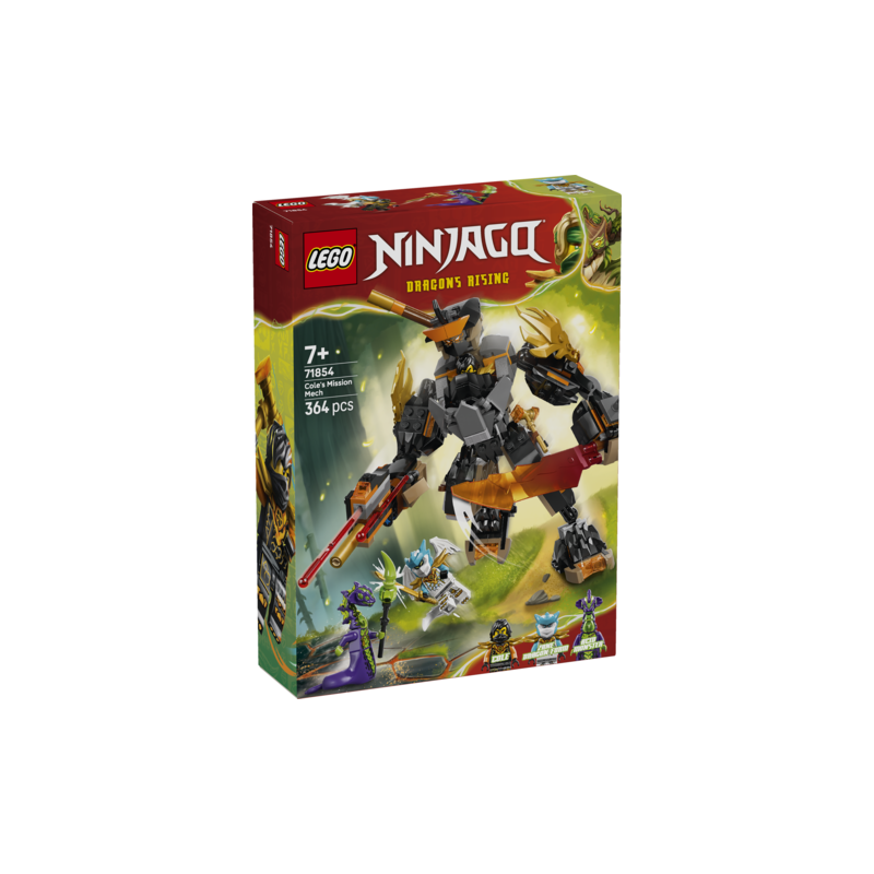 NINJALEGETØJ TIL BØRN – Sættet Coles missions-mech og drage-Zane (71854) giver drenge og piger fra 7 år mulighed for at genskabe eventyr fra sæson 4 af tv-serien NINJAGO®: Dragerne vågner