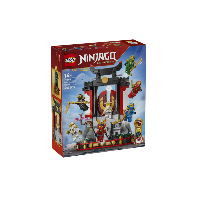 UDSTILLINGSSTAND MED LEGETØJSNINJAER – Byggesættet Ninjakarakterer – 15-års jubilæum (71866) er et sæt til drenge, piger og nostalgiske fans fra 14 år for at fejre 15 år med LEGO® NINJAGO® tv-serien