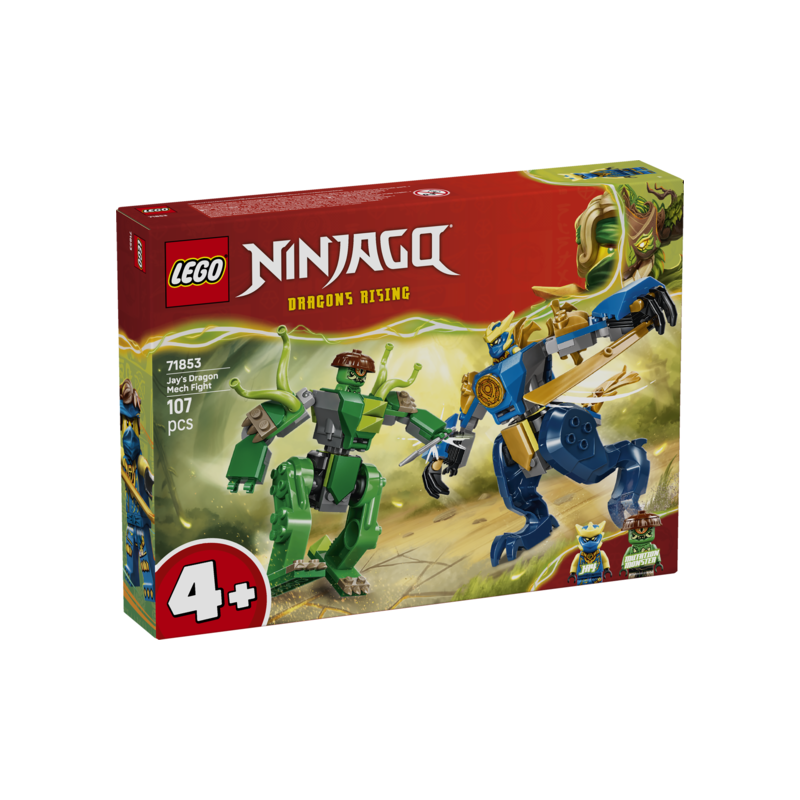 • BEVÆGELIGE FIGURER – Begge mech-robotter har cockpits, der kan åbnes for atindsætte deres minifigurer, og justerbare haler, ben, arme og kroppe, så små ninjafans kan placere dem i forskellige kampstillinger • 2 NINJAGO®-MINIFIGURER – Det eventyrfyldte legesæt indeholder Jay og et skurke-mutationsmonster, så børn kan genskabe a ctionscener fra sæson 4 af tv-serien NINJAGO: Dragerne vågner • 4 VÅBEN SOM TILBEHØR – NINJAGO®-kampsættet har en stor legeværdi og indeholder 4 udskiftelige legetøjsvåben: 2 sværd, et spyd og et sæt kløer • FANTASIFYLDTE GAVER TIL BØRN – LEGO® byg-selv-sættet rummer en sjov bygge- og legeoplevelse og er en gaveidé med ninjatema til børn fra 4 år, der sætter gang i fantasien og udvikler evnen til historiefortælling • FLERE NINJAEVENTYR – Udforsk mere LEGO® ninjalegetøj (sættene sælges separat), der omfatter detaljerige drager, mech-robotter, templer og fartøjer • INTRODUKTION TIL AT BYGGE MED LEGO® KLODSER – LEGO legesæt til børn i børnehavealderen hjælper børn med at lære at bygge, og resten af familien kan også deltage i den sjove oplevelse