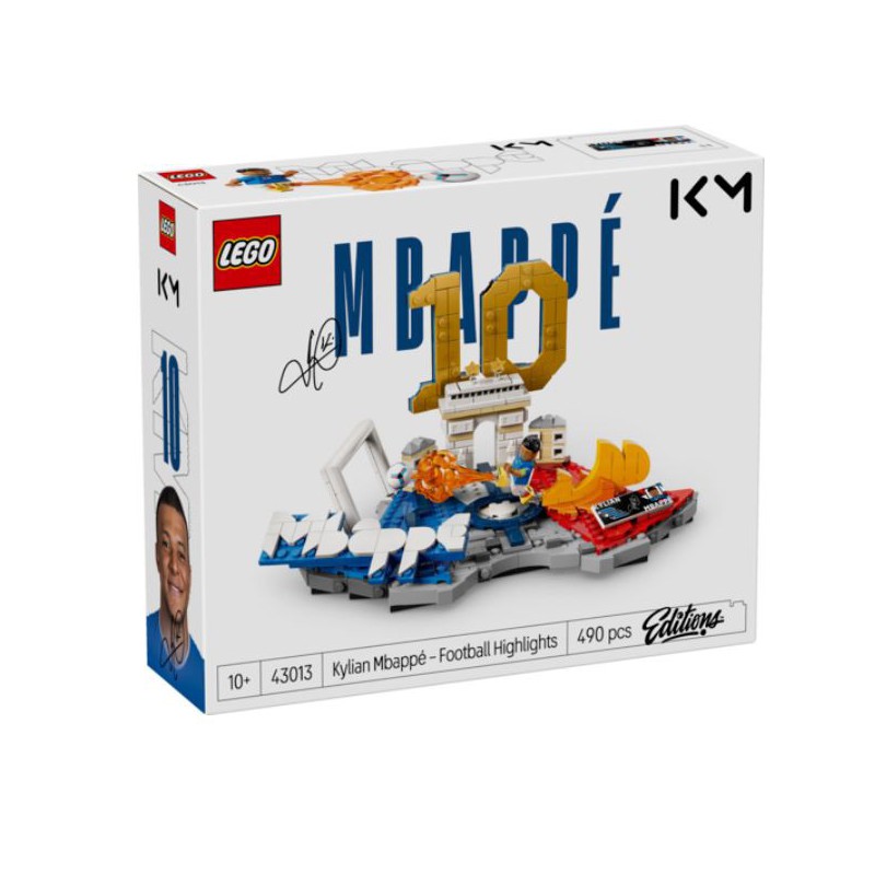 • MERCHANDISE TIL SPORTSFANS – Modellens base rummer Mbappés navn, og sættet er designet i det franske landsholds farver med trøjenummeret 10 og et samlerobjekt af en faktaplade med hans spillerstatistik og underskrift