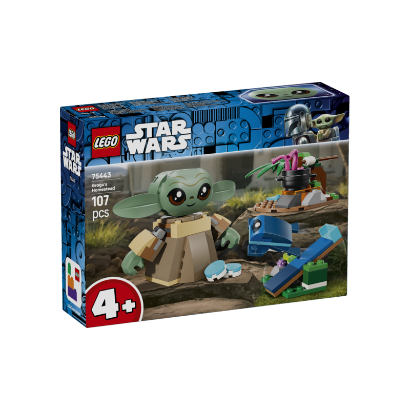 • BYG OG LÆR – Børn fra 4 år kan lære at bygge med klodser og skabe fantasifulde eventyr med byggelegetøjet Grogus hjemsted (75443), der er inspireret af sæson 1 af Star Wars: The Mandalorian™ • BEVÆGELIG GROGU-FIGUR – Modellen af Grogu er let at bygge, og dens hoved, arme og hænder kan drejes • SJOVT TILBEHØR – Byg et bålsted med en gryde til 2 tentakler, put pinden med en skumfidus i Grogus hånd, og læg 1 af de 2 blå macarons i Grogus mave