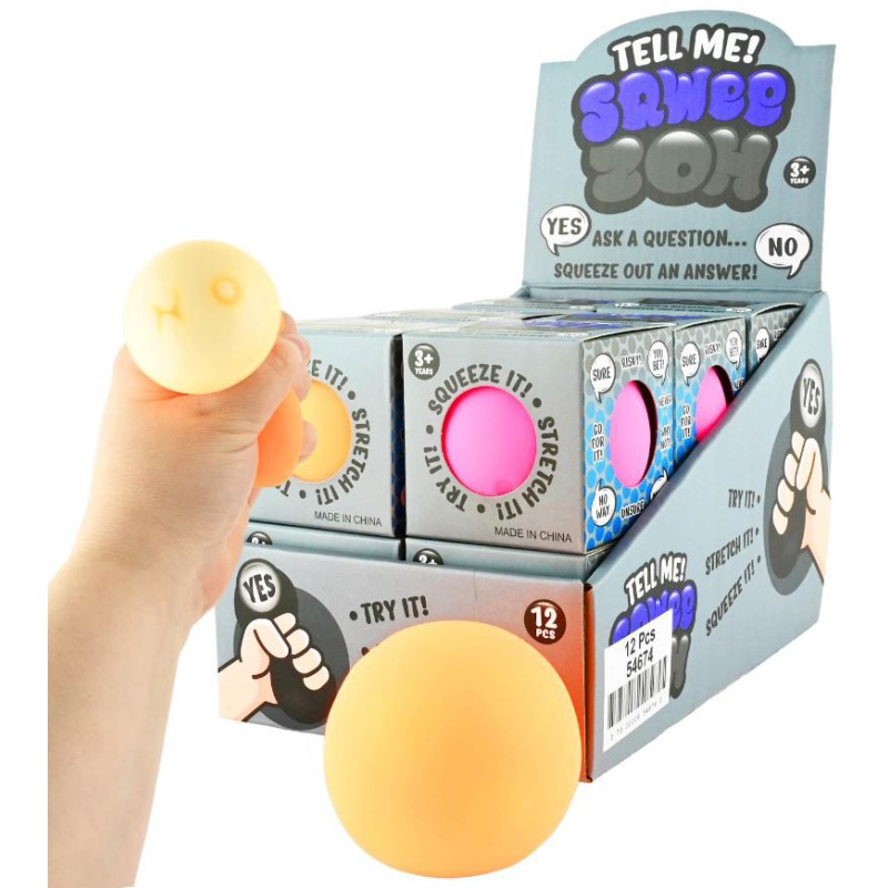 Squeeze Ball Fortune Teller er en blød og underholdende squishy, der kombinerer leg med små forudsigelser. Den elastiske overflade gør den sjov og beroligende at klemme på, hvilket kan reducere stress og give timevis af underholdning. Squishyen fungerer som både en spændende legefigur og en lille fidget, der kan bruges hjemme eller på farten. Perfekt som gave, kalendergave eller hyggelig overraskelse, hvor børn og voksne kan have det sjovt med at få små “spådomme” samtidig med at de leger og udforsker den bløde tekstur.
