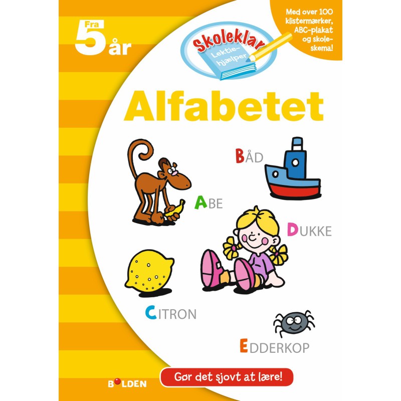 I indskolingsårene skal der læres meget, og sjove opgavebøger styrker indlæringslysten og giver bedre forståelse for de ting, som barnet skal lære i skolen. Denne bog indeholder opgaver, som træner barnet i at genkende alfabetets bogstaver, hvordan bogstaverne lyder - og hvordan man skriver dem. Bogen er illustreret med sjove tegninger og indeholder skoleskema, ABC-diplom og mere end 100 klistermærker.