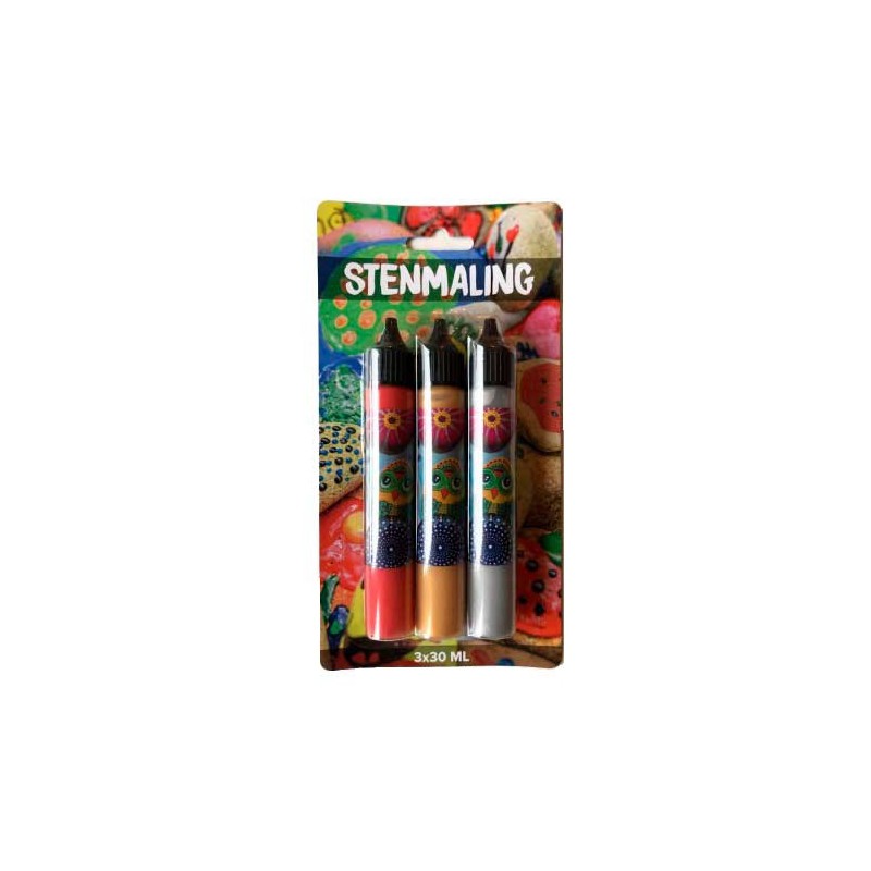 Stenmaling i bedste kvalitet. 30 ml. pr. farve. Med stenmaling kan du forvandle helt almindelige sten til små unikke kunsværker. Kan males didrekte på stenen fra tuben, eller bruges sammen med pensel og svamp. Husk at stenene skal være rene og tørre inden brug. Masser af sjov for store og små.