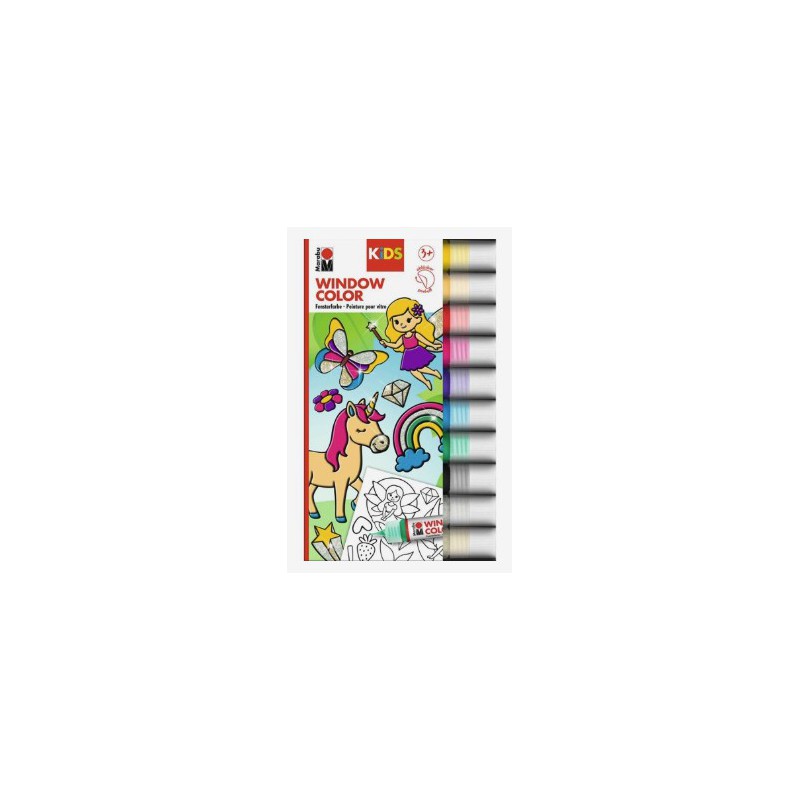 Marabu Fun & Fancy Glitter Fairy 10x25 ml + motiver er et kreativt sæt med 10 glitrende farver og tilhørende motiver, som gør det nemt for børn at dekorere og skabe fantasifulde projekter