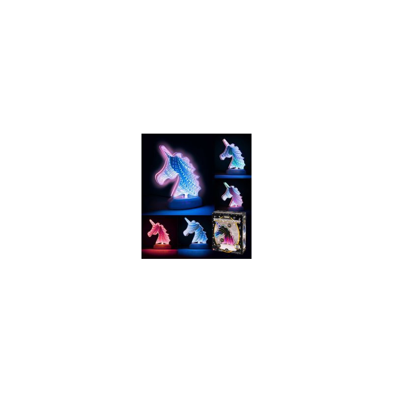 19x15 cm bordlampe med flot infinity-effekt og LED-lys i forskellige farver du selv kan skifte ved tryk på touchknappen. Inkl. USB-C kabel. Kan også bruges med 3 stk. AAA-batterier (ikke inkl.).