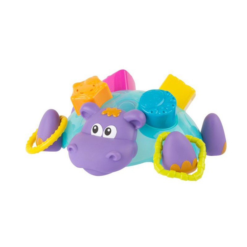 Hver form, fra den trekantede til den cirkulære, passer perfekt ind i flodhestens tilsvarende formerede åbninger. Dit barn vil elske at matche formerne og se dem glide ned i flodhestens mave, mens de plasker og leger i badekarret.