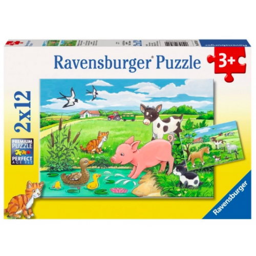 2 puslespil med hver 12 brikker og søde motiver med bondegårdsdyr