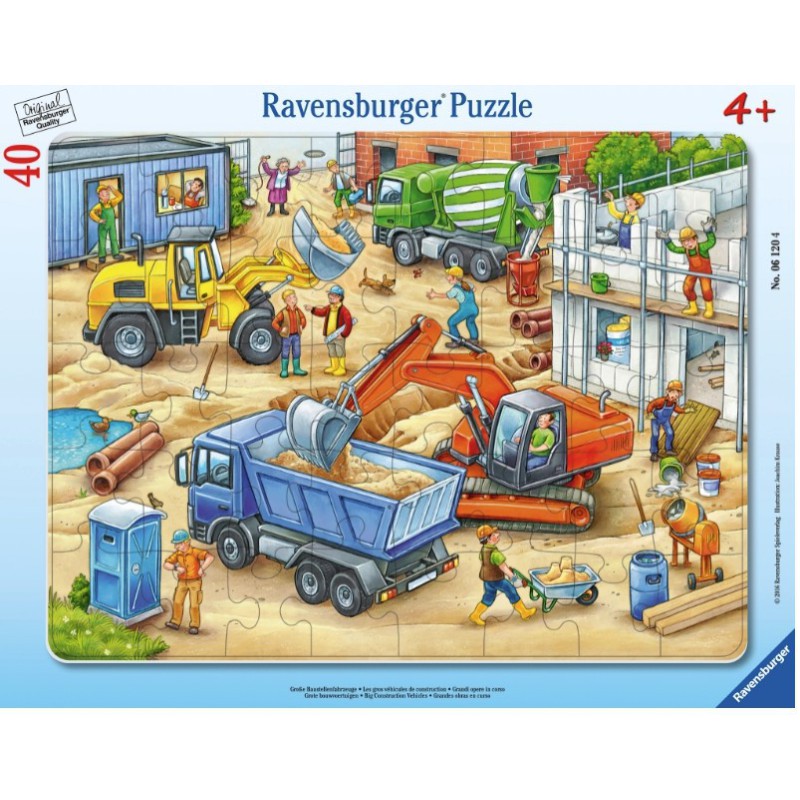 Fladt puslespil med bygge- og entreprenørkøretøjer 30-48 dele