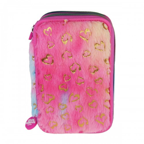 Penalhuset har blød pels og et stilfuldt leopardmønster i regnbuefarver.