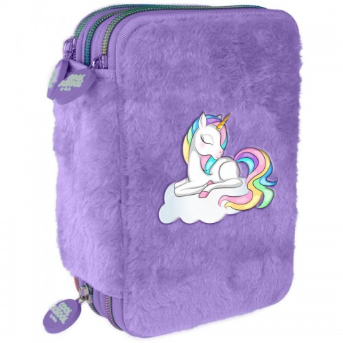 Flot penalhus med enhjørningmotiv og lilla plys.