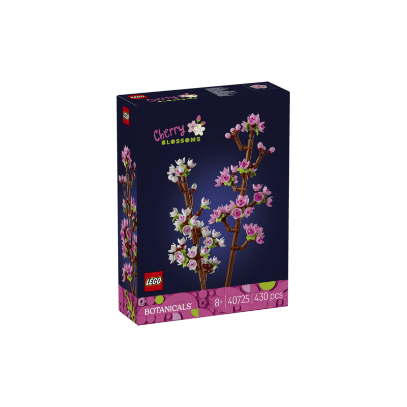 • Tilpas blomsterne – Byggere kan kombinere knoppernes farver for at skabe 2 unikke grene • Blomsterudsmykning – Når kirsebærblomsterne er færdige,kan de udstilles i ethvert rum som forårsinspireret udsmykning • LEGO® buket – Kirsebærblomsterne kan kombineres med andre LEGO blomster (sælges separat) for at skabe et farverigt arrangement • Festlige gaver – Kirsebærblomsterne kan gives som gave til børn med grønne fingre, eller som gave til valentinsdag eller mors eller fars dag til naturelskere • Størrelse – Sættet indeholder 430 elementer, og hver kirsebærgren er over 35 cm lang
