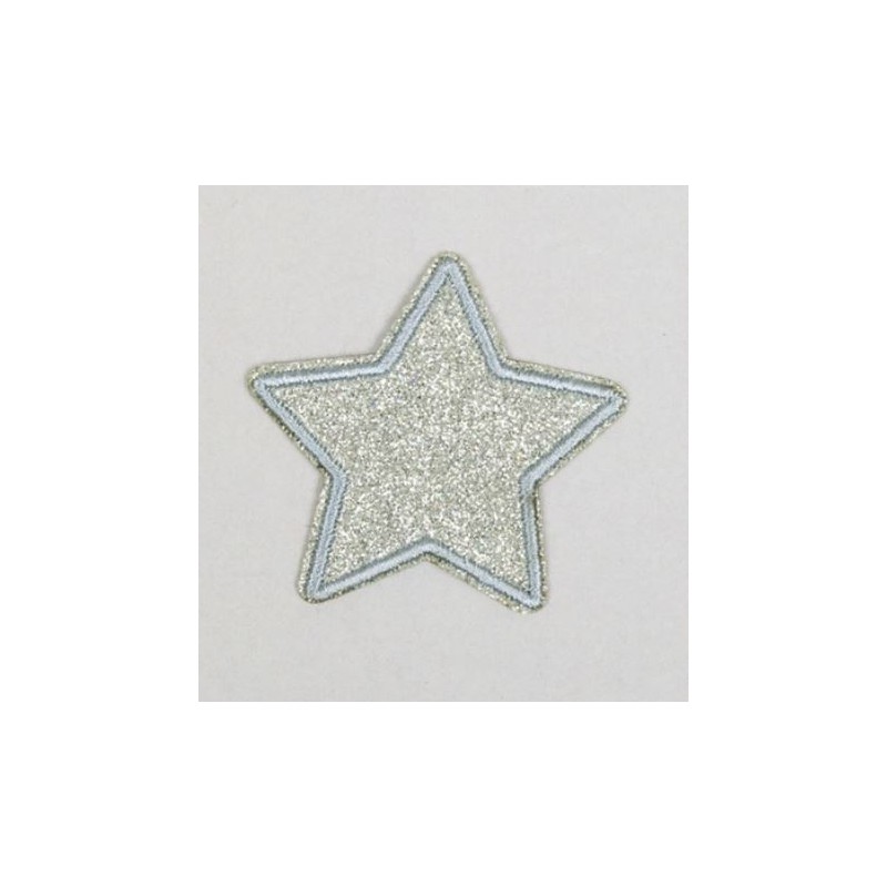 Strygemærke med sølv glitter stjerne motiv 1 stk.