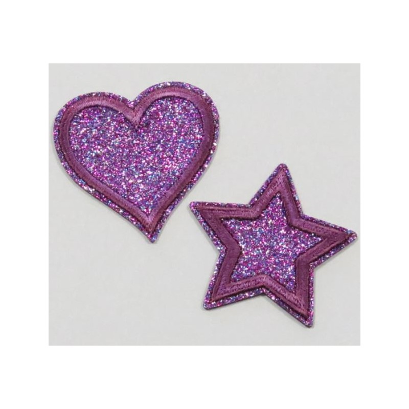 Strygemærke med lilla stjerne og hjerte motiv 2 stk.