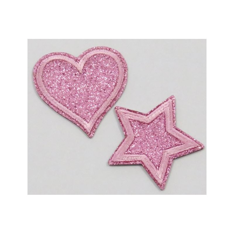 Strygemærke med pink stjerne og hjerte motiv 2 stk.