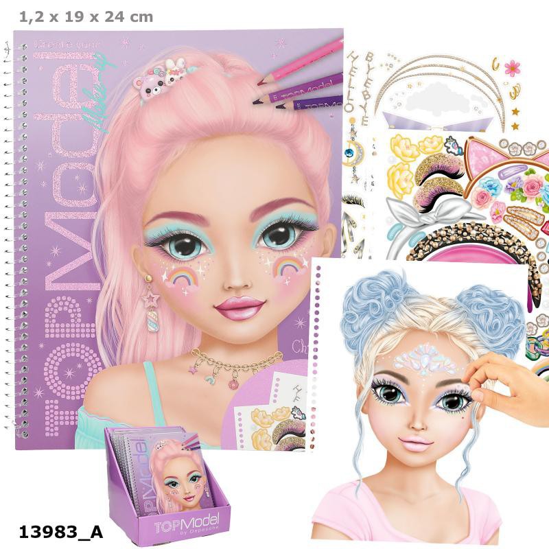 TOPModel Make-up designbogen indeholder 20 sider med ansigter, som du kan sminke og tegne frisurer på.
