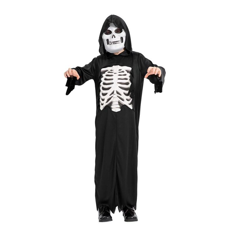 Skeletdragt med hætte og maske.