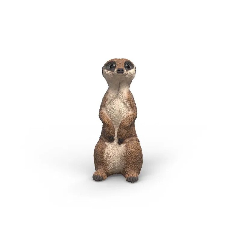 Surikaten står stille som en statue og holder øje. Kun dens spidse næse rykker fra tid til anden for at lugte.